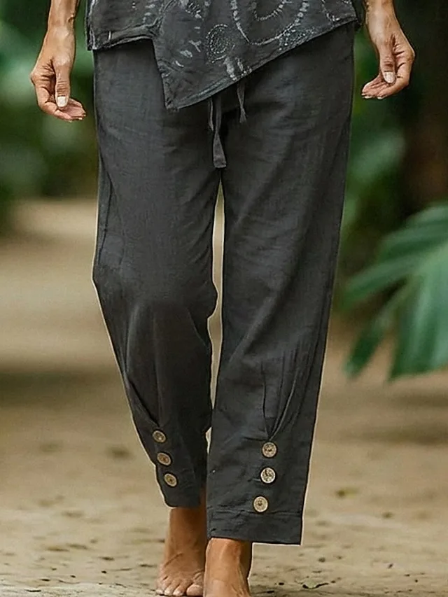 Stilvolles Baumwoll-Leinen-Set mit Rundhals und Taschen. Perfekt für Alltag und Straße – jetzt entdecken und bequem tragen.