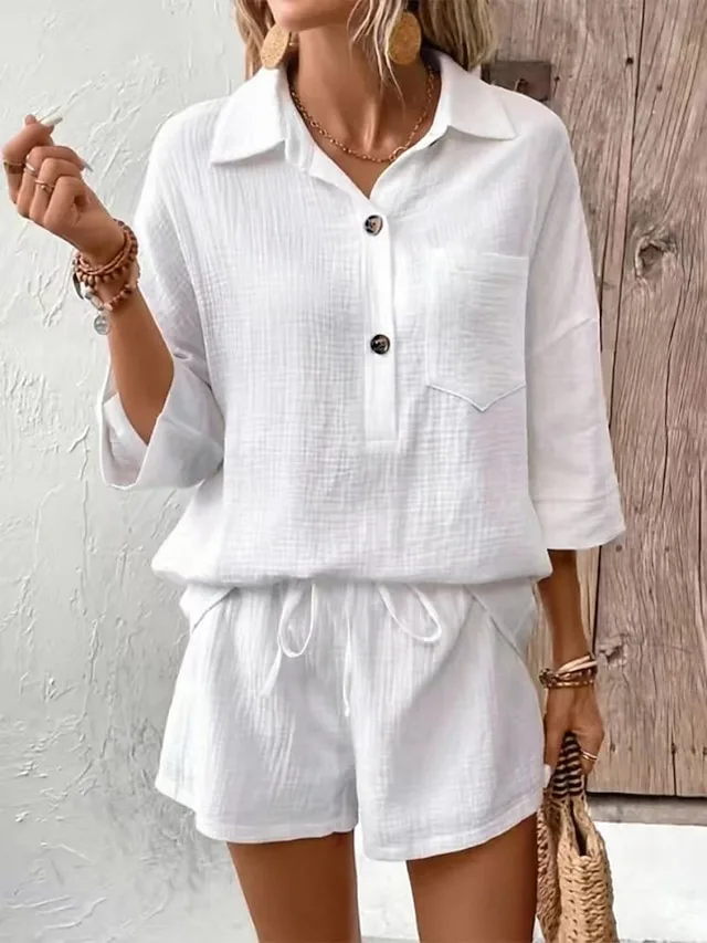 Stilvolles zweiteiliges Set mit Hemdkragen und Shorts aus Baumwolle. Perfekt für Alltag, Freizeit und warme Tage – jetzt entdecken.