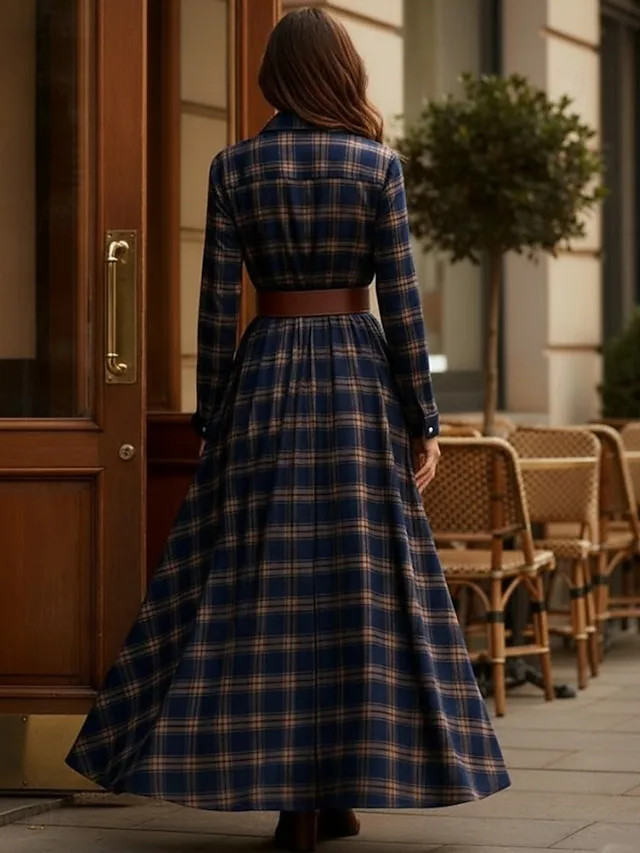 Lässiges Maxikleid mit Karomuster, Hemdkragen und Langarm. Ein stilvoller Begleiter für Alltag und Freizeit. Jetzt entdecken.