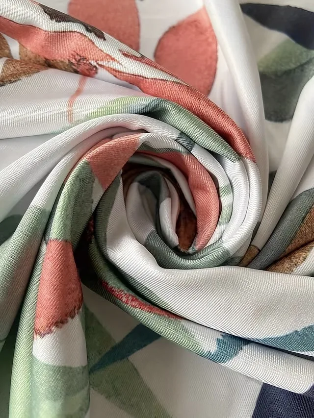 Elegantes Satin-Midi-Kleid mit Blumenmuster und V-Ausschnitt. Perfekt für Urlaub, Strand und stilvolle Sommer-Looks.