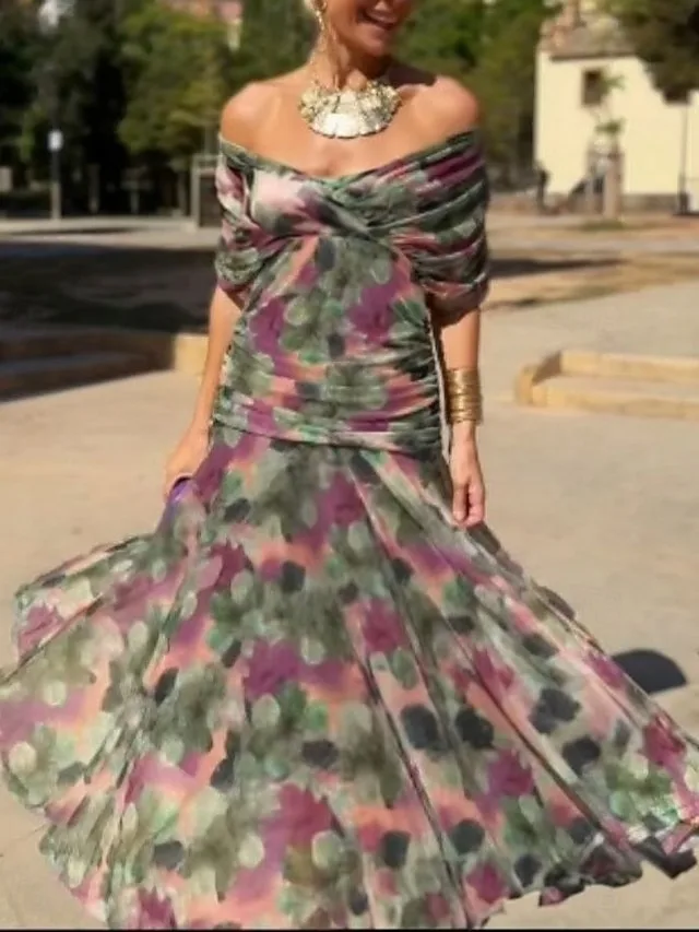 Elegantes Boho-Maxikleid mit Blumenprint, V-Ausschnitt und Kurzarm. Perfekt für Urlaub, Freizeit und warme Tage. Jetzt entdecken.