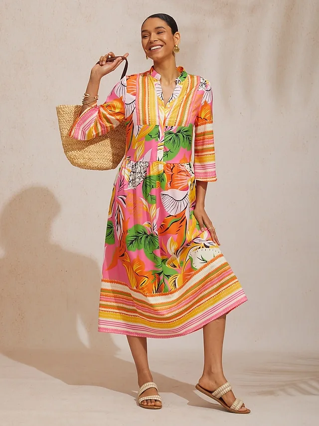 Leichtes, lässiges Midi-Kleid mit Grafik- und Blumenmuster. Perfekt für Urlaub, Strand und Party. Jetzt entdecken.