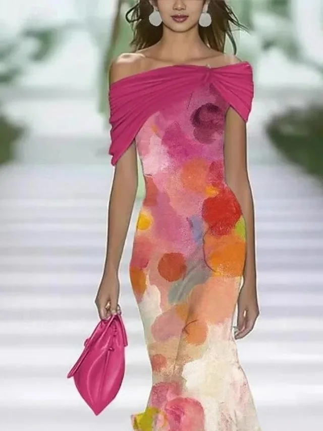 Stilvolles Midikleid mit floralem Muster und Kalter-Schulter-Ausschnitt. Perfekt für Büro, Party und Urlaub – jetzt entdecken.