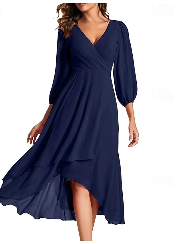 Elegantes Chiffon-Midikleid mit Spitze und V-Ausschnitt. Perfekt für Abendpartys, Hochzeiten und stilvolle Anlässe. Jetzt entdecken.