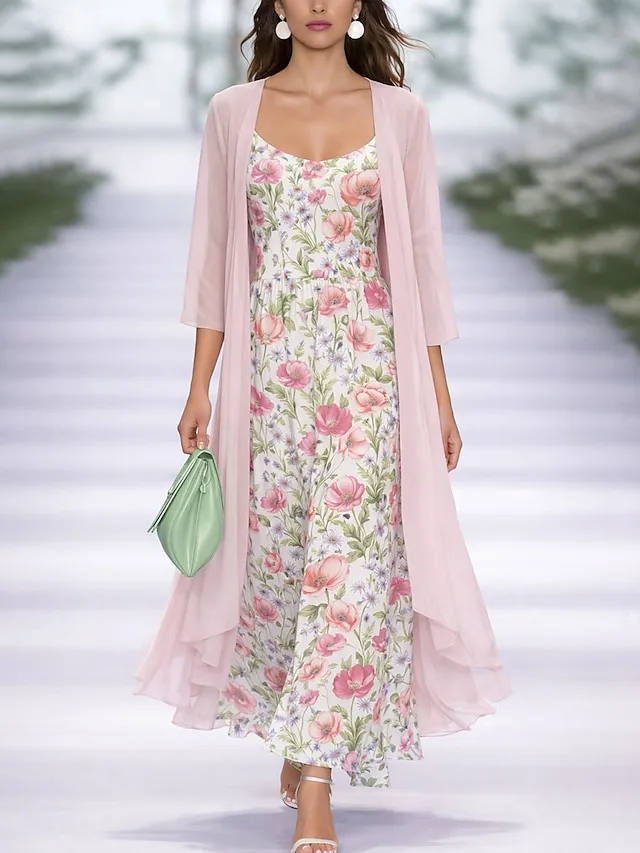 Elegantes Blumen-Maxikleid aus Chiffon mit U-Ausschnitt. Jetzt entdecken und stilvoll durch besondere Anlässe gehen.