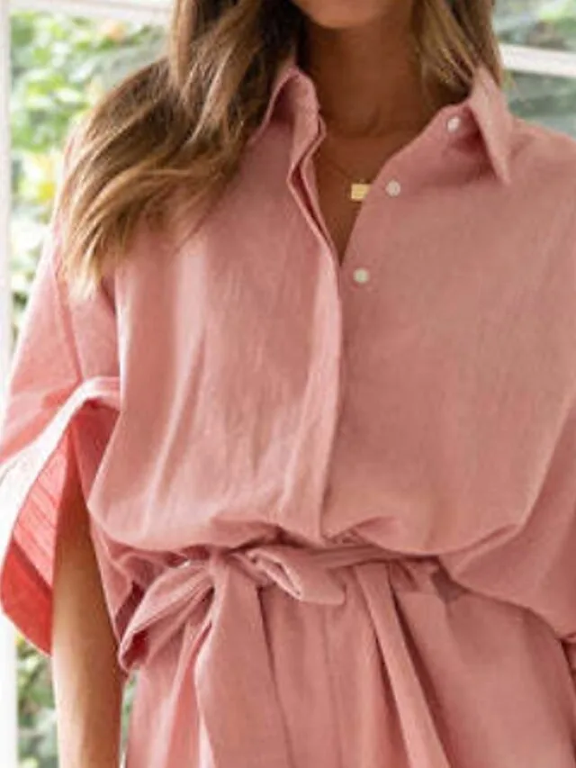Entdecken Sie einen entspannten Look mit luxuriöser Leichtigkeit: Dieses zweiteilige Set verbindet klare Linien mit einer eleganten, sommerlichen Ausstrahlung. Die dezente Struktur im Baumwoll-Mix und der klassische Hemdkragen verleihen dem Ensemble eine stilvolle Präsenz für Tage, an denen Komfort und Chic gleichermaßen zählen.
