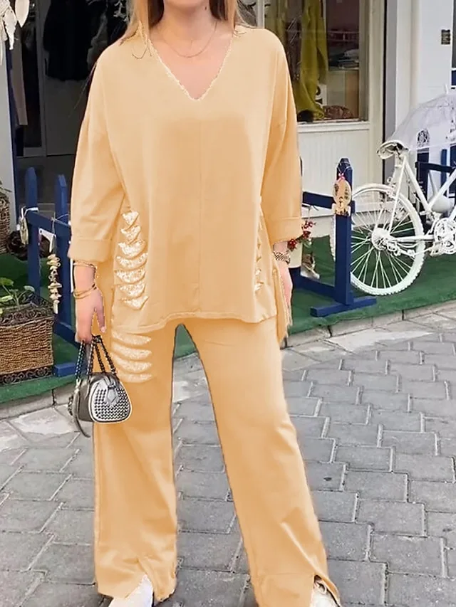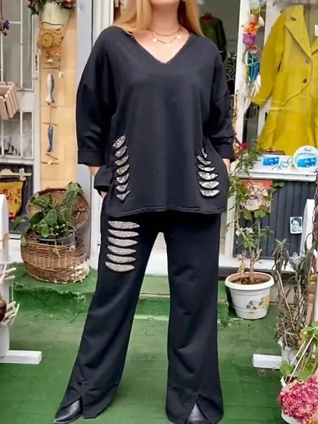 This blouse combines effortless elegance with a relaxed silhouette, adding a chic, modern touch to your everyday look. The subtle sequin detail provides a refined accent, while the V-neck and long sleeves ensure a stylish, versatile appearance.