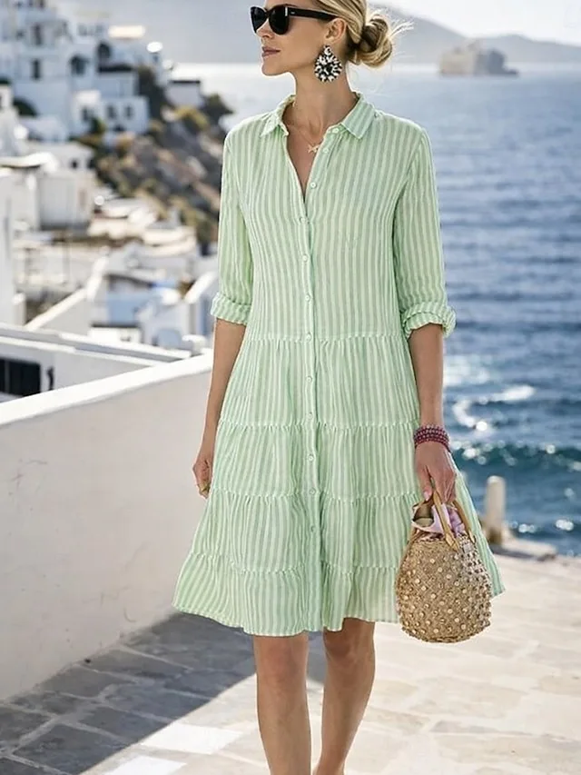 Lässig Normal Striped Revers Long Sleeve Mini Dress
