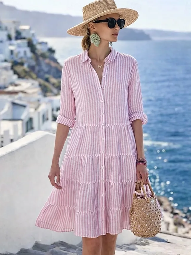 Casual striped mini dress with a lapel collar and long sleeves. Stylish, comfortable, and perfect for everyday wear – discover it now.