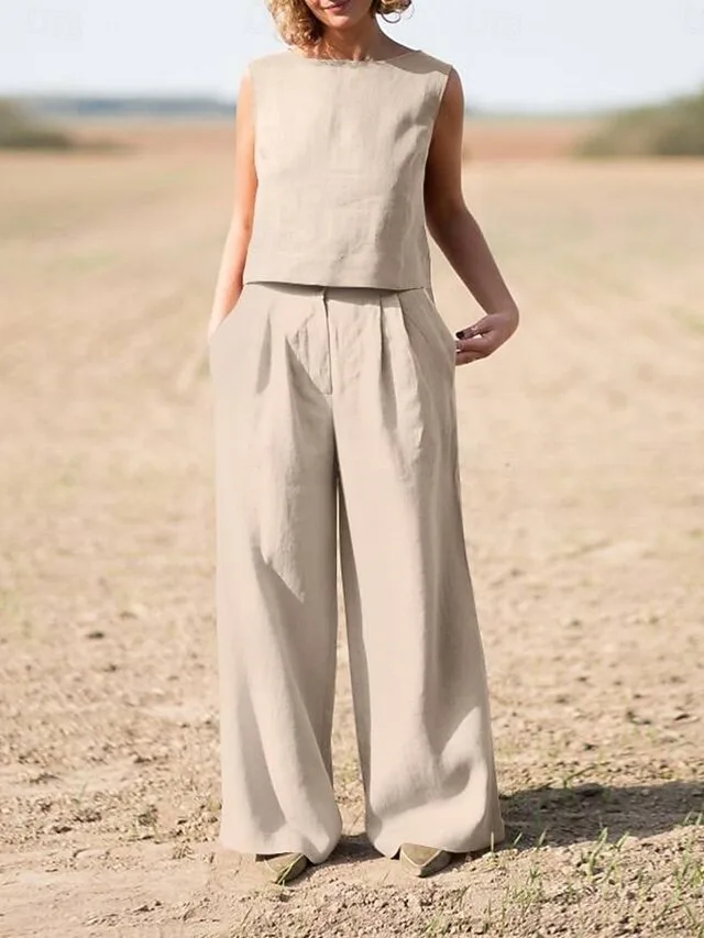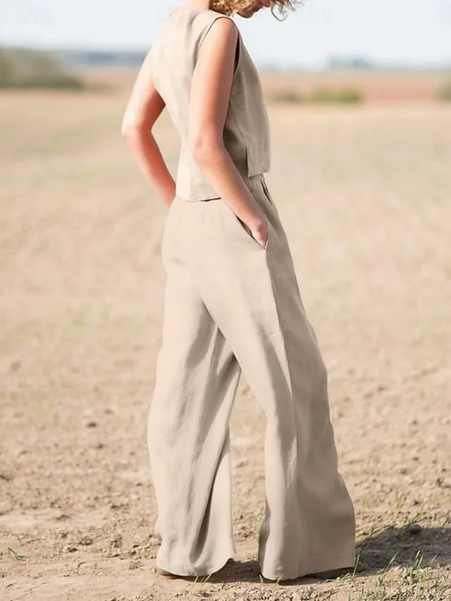 Elegant sleeveless blouse made of cotton and linen with a loose fit. Discover stylish options for everyday wear, work, and summer.