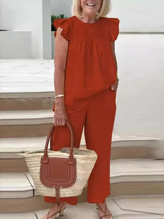 Elegant, sleeveless summer set made from a cotton-linen blend. Perfect for vacation and leisure – discover it now.